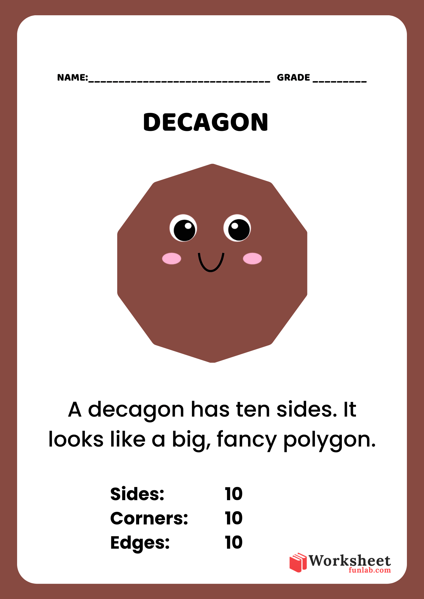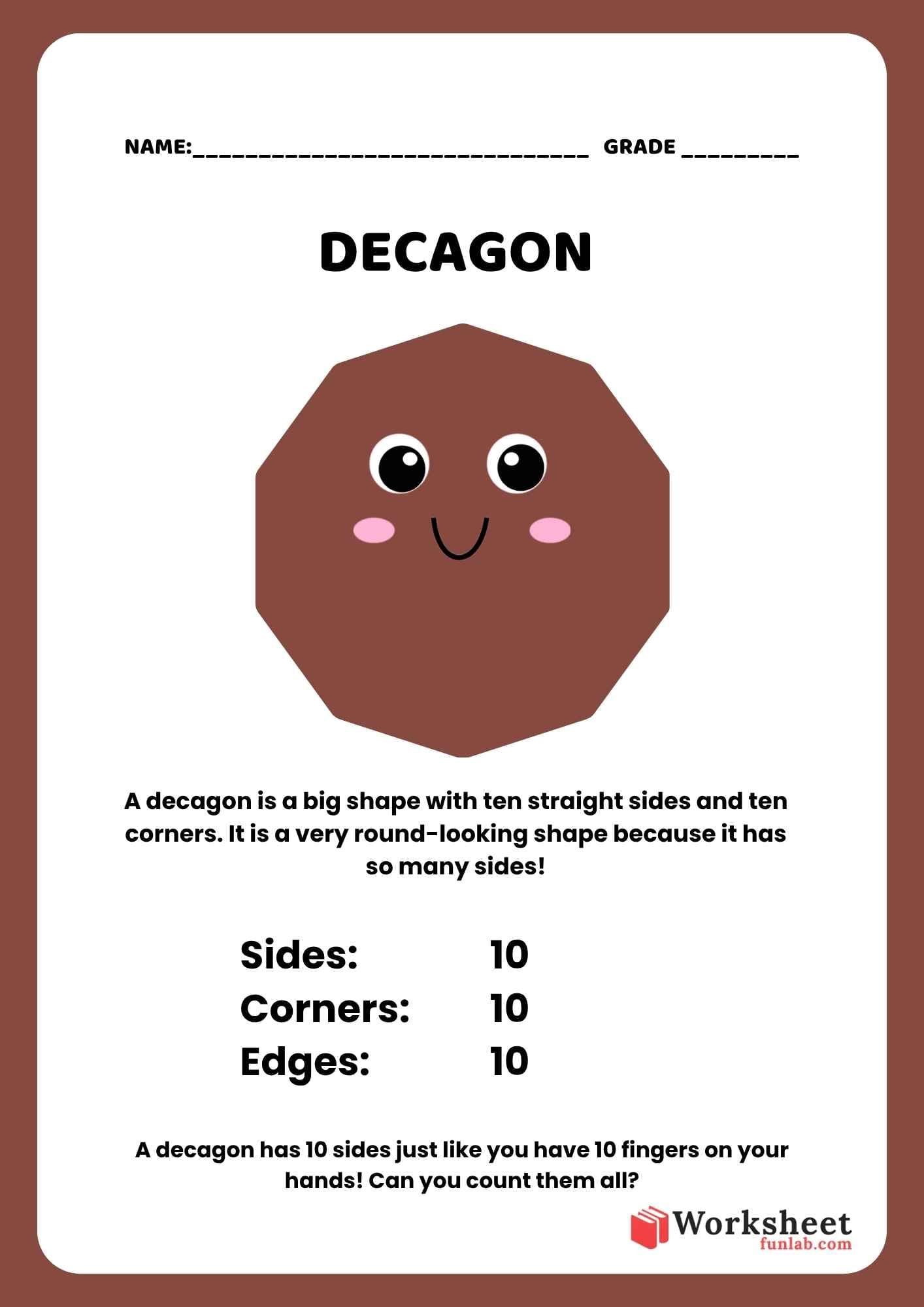 All About Decagon: Fun Basic 2D Shapes Vocabulary Worksheet