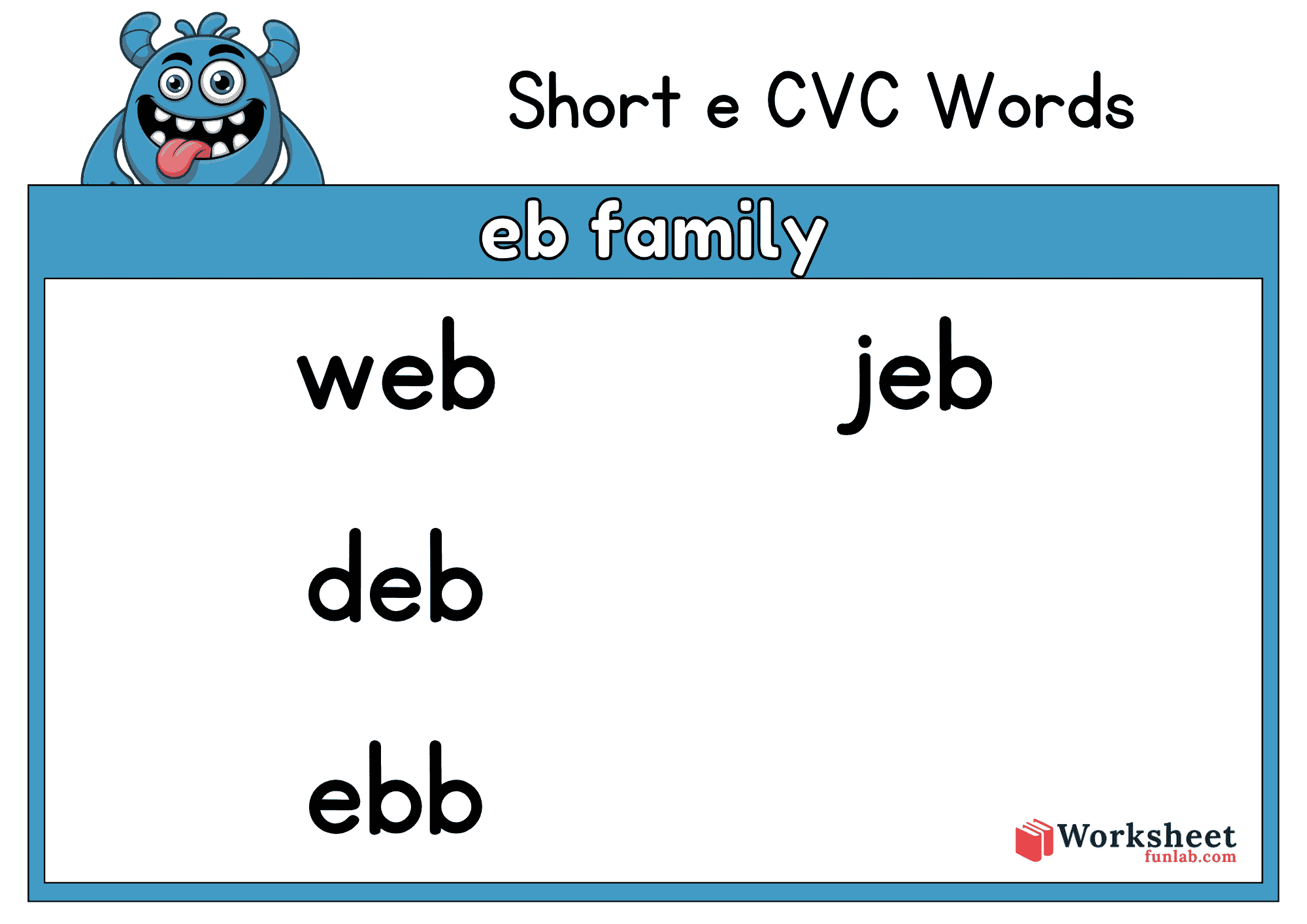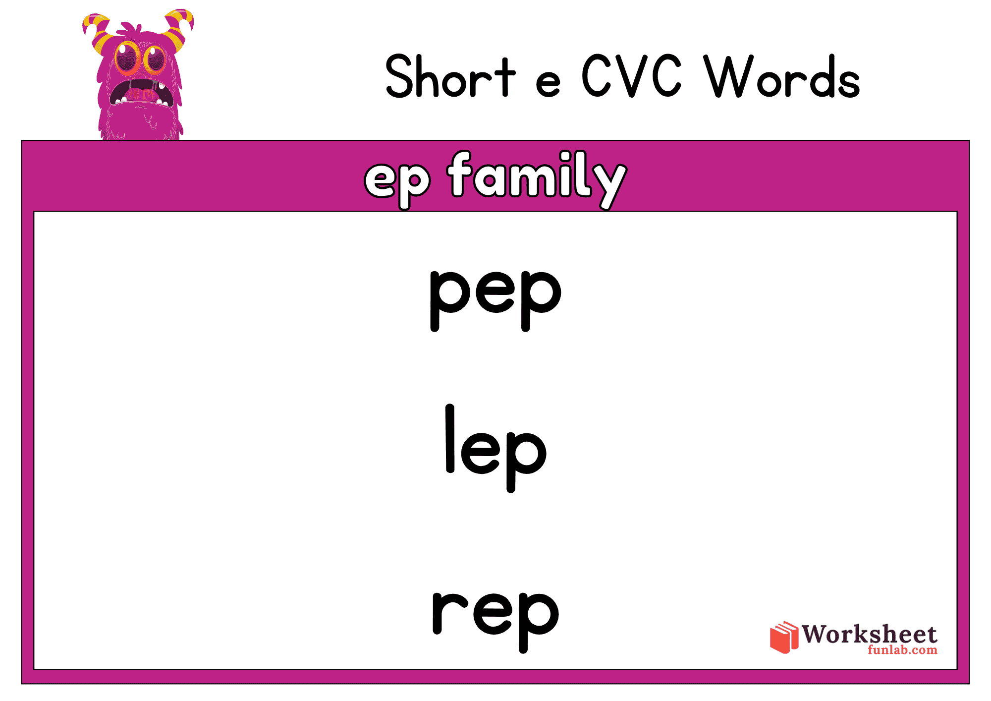 Kids will enjoy using this engaging and interactive Short e CVC Words Worksheet to master phonics, blending, and rhyming through various word families.