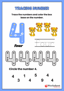 Interactive Tasks: Includes a “Circle the number 4” section to improve number recognition and identification skills.