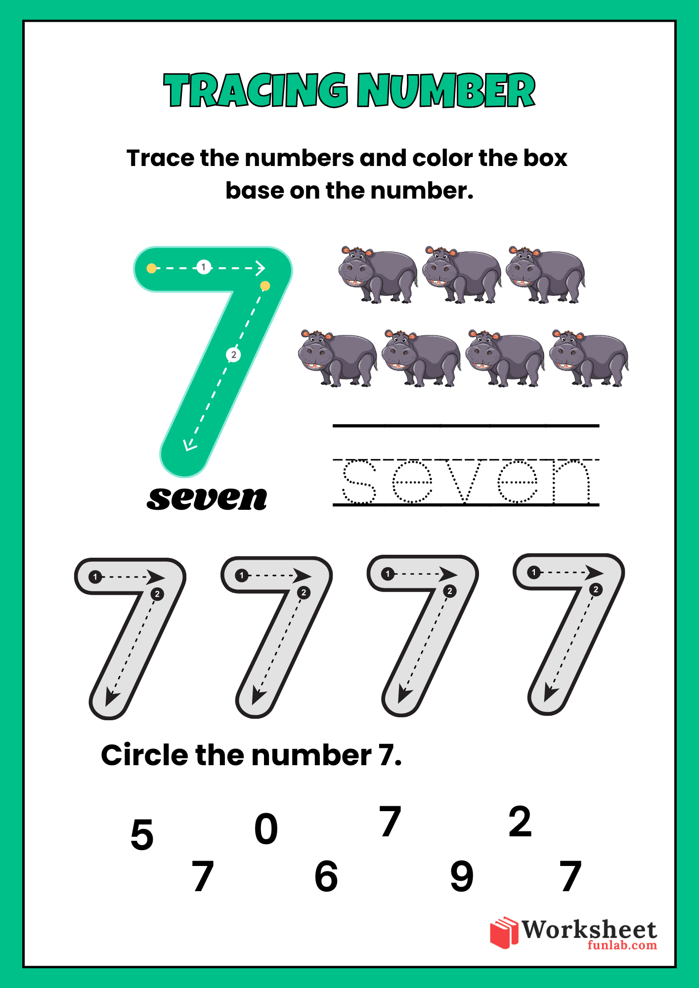• Interactive Tasks: Includes a “Circle the number 7” section to improve number recognition and identification skills.