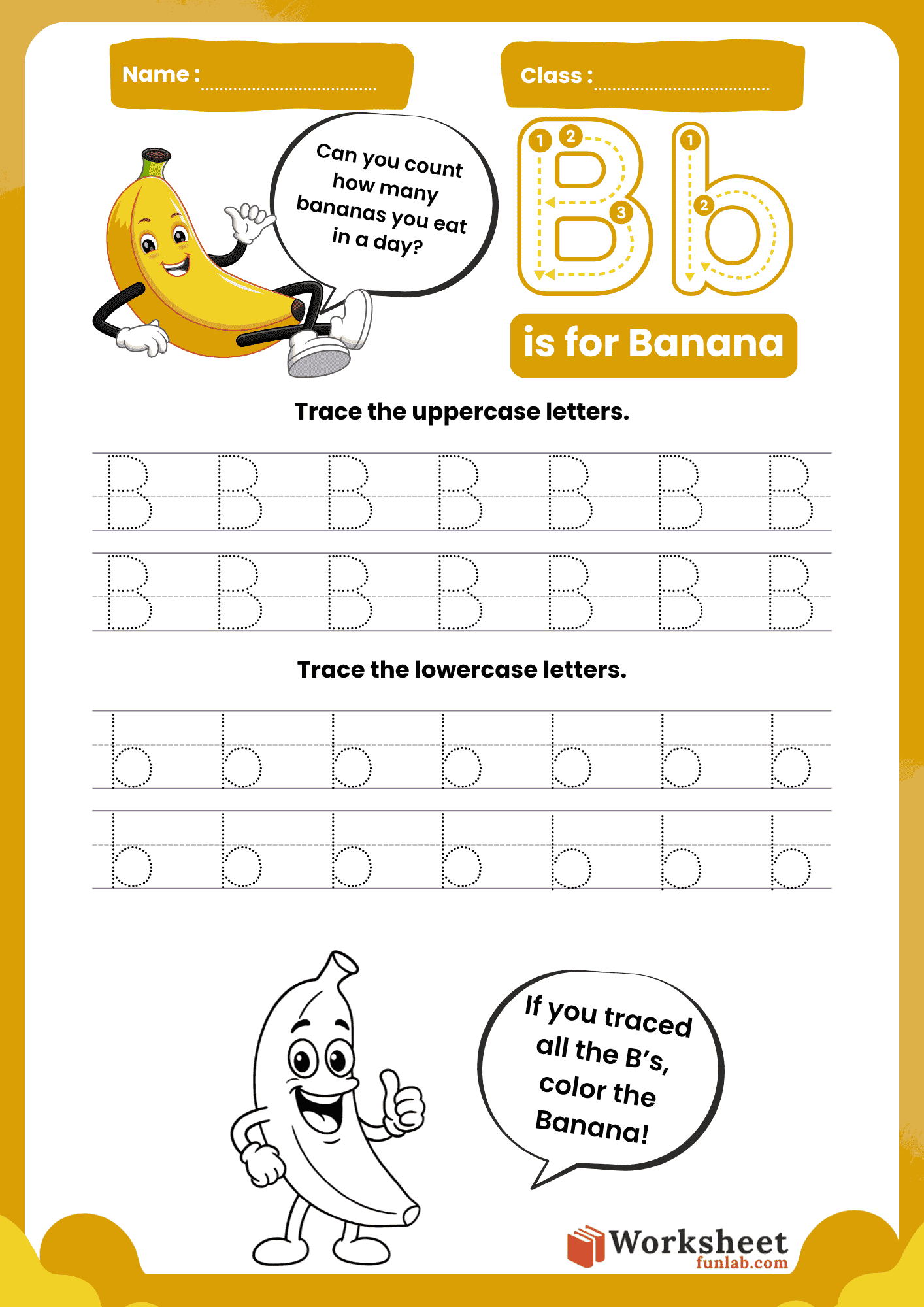 Teachers can use this as a quiet-time activity, while parents can incorporate it into a daily “Letter of the Day” routine. Encourage the child to say “B is for Banana” every time they finish a row. Once the page is complete, let them color the banana character at the bottom as a “reward” for their hard work.
