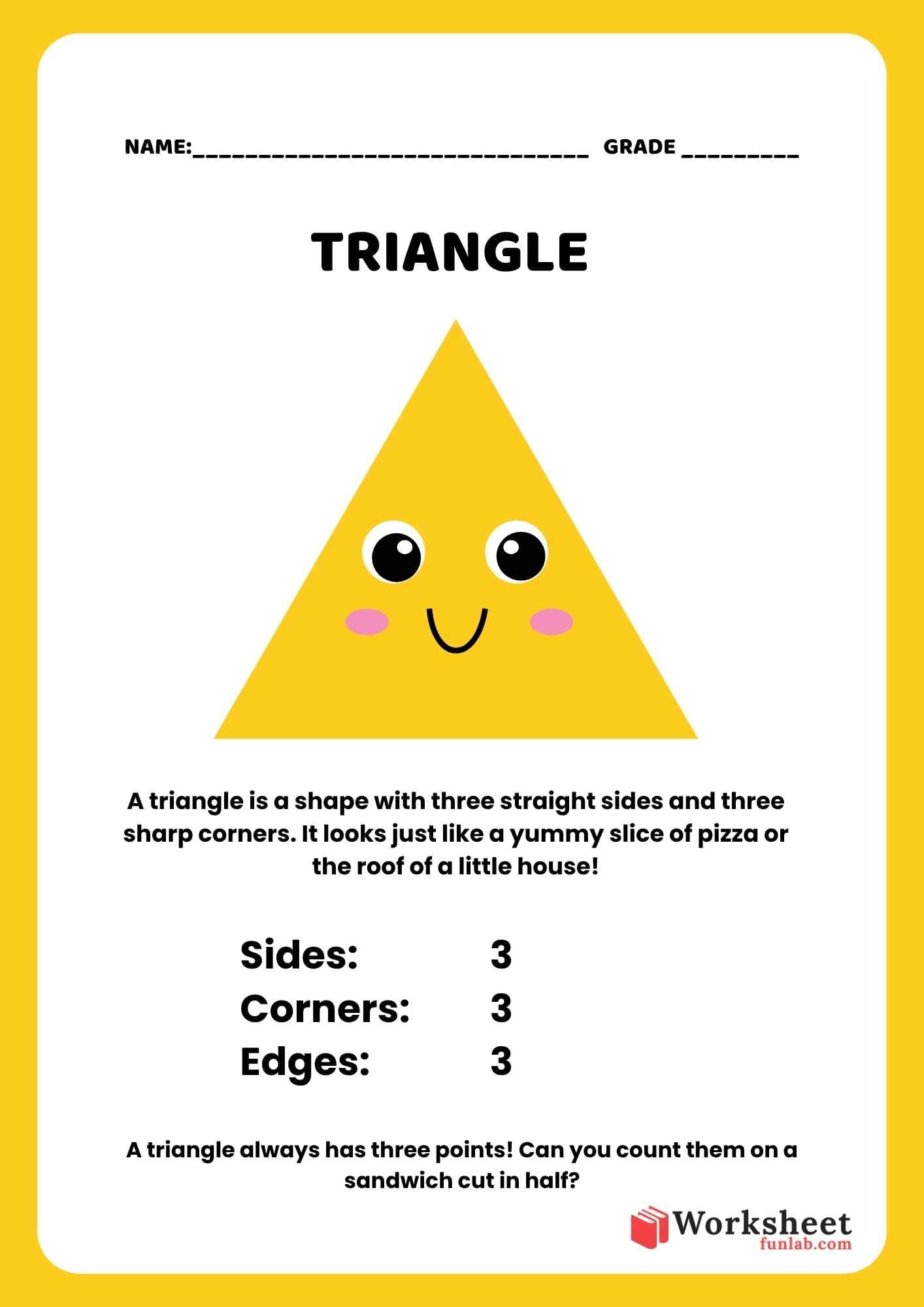 Essential Geometric Properties: Provides a clear breakdown of the triangle’s attributes, highlighting that it has 3 sides, 3 corners, and 3 edges.
